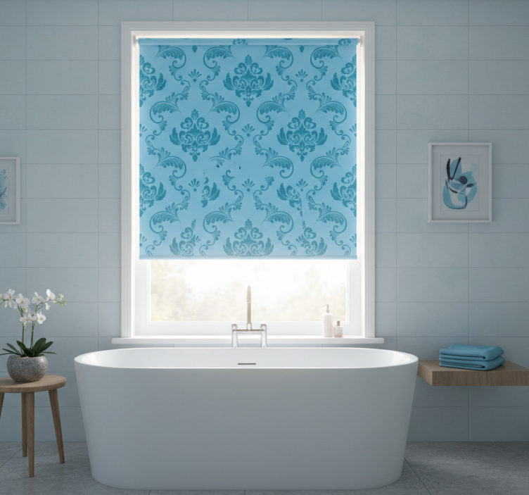 Reference: E6165Transform your bathroom into a serene sanctuary with our Bathroom blind in blue botanical curves. This stunning design features elegant blue botanical curves that effortlessly blend nature with sophistication. The intricate patterns, combined with a rich color palette, not only enhance the aesthetic appeal but also create a calming atmosphere. Enjoy the benefits of easy assembly and disassembly, ensuring that cleaning around your windows is a breeze!