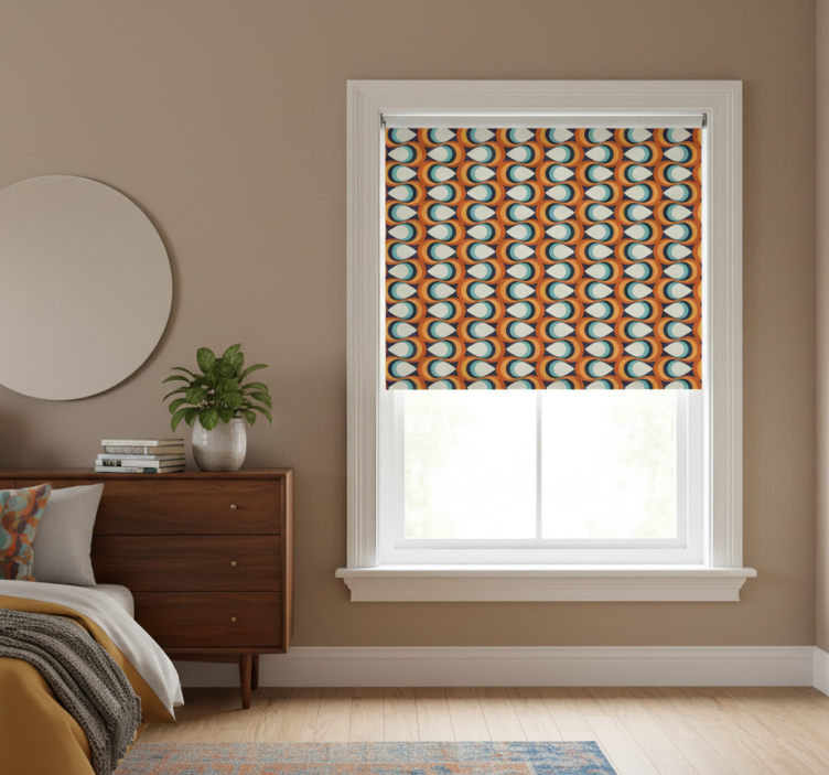 The Blind bedroom 70s pointed circles design blind bedroom is not just a functional addition; it's a statement piece that enhances your interior decor! Its unique pattern and vibrant colors can elevate the ambiance of any bedroom, making it a delightful focal point. By incorporating this roller blind into your decor, you can create an inspiring atmosphere that reflects your personality and taste, turning your bedroom into a cozy retreat.