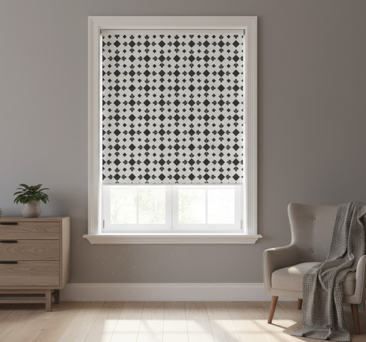 Reference: E9925Transform your space with our stunning blind bedroom with black and white tiles. This design boasts a sophisticated blend of classic black and white tiles, creating a chic and modern aesthetic that elevates any bedroom. The roller blind offers easy assembly in 2 clicks, is simple to clean, and can be disassembled just as easily, allowing for quick maintenance of your windows and surroundings. Additionally, it protects the room from direct sunlight while providing privacy when lowered, making it an ideal choice for your bedroom.