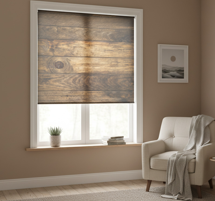 The Blind bedroom with brown wooden planks blind bedroom is the perfect choice for those looking to elevate their interior design. With its elegant wooden texture and customizable options, it adds a touch of sophistication to any room. Imagine how this roller blind can transform your space into a serene retreat, providing both style and comfort! Let your creativity flow and enhance the beauty of your bedroom with this exquisite design.