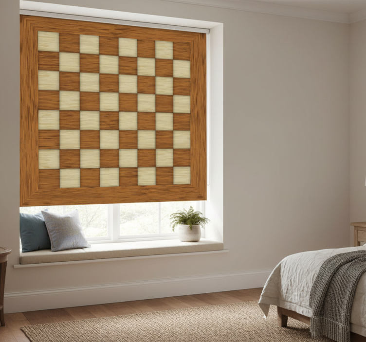 The Blind bedroom chessboard design blind bedroom is the perfect choice for those looking to elevate their interior aesthetics. Its striking chessboard pattern creates a visual focal point, inspiring creativity and thoughtfulness in your space. Imagine waking up to a beautifully adorned room that reflects your personal style and enhances your mood! This roller blind not only serves as a decorative piece but also offers privacy and light control, making it a must-have for your bedroom makeover.