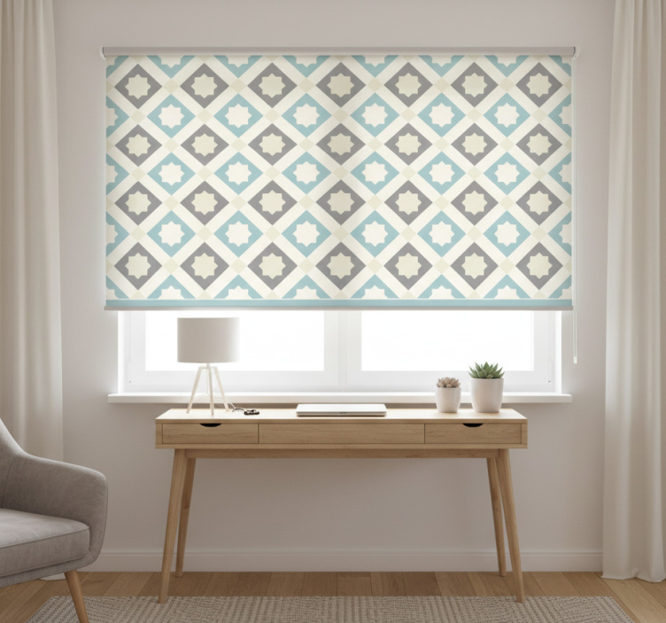 Reference: E9899Transform your space with the Blind bedroom light blue modern geometric stars, a stunning roller blind that combines contemporary style with functionality. Featuring a beautiful light blue hue adorned with modern geometric stars, this design effortlessly enhances the aesthetic of your bedroom while providing essential features such as easy assembly, easy cleaning, and the ability to regulate room temperature.