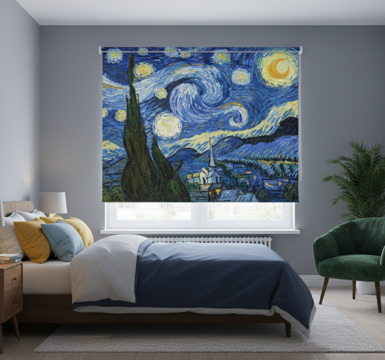 Make your home a sanctuary with the Blind bedroom starry night by van gogh blind bedroom. This roller blind is not just a window covering; it’s a statement piece that inspires creativity and tranquility. Imagine waking up every day to the serene beauty of a starry night, right in your own bedroom! Its artistic design elevates your space, inviting warmth and a touch of elegance that resonates with anyone who enters.