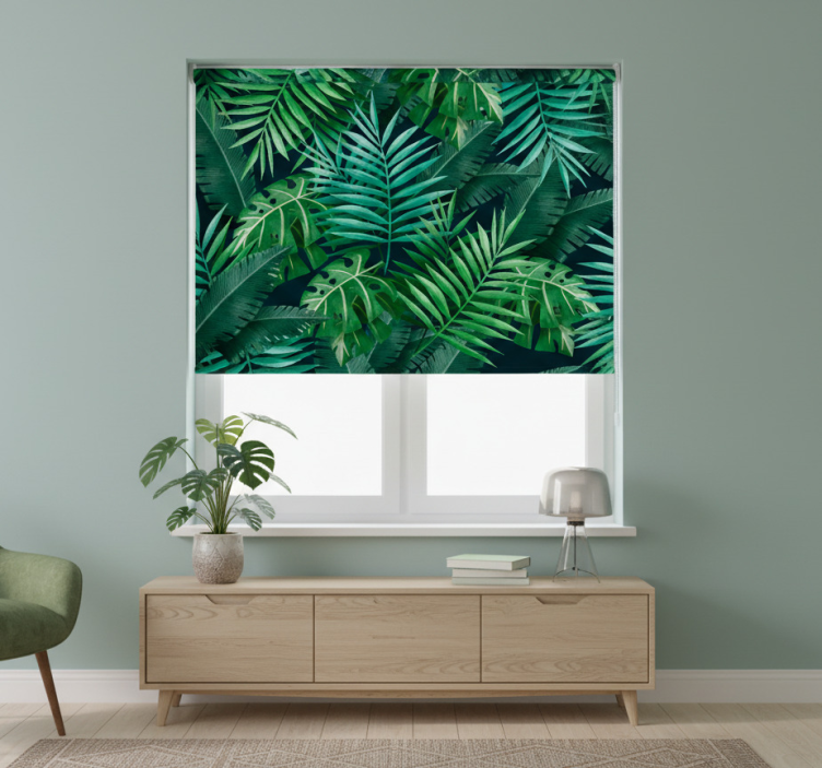 Blind bedroom with circular exotic green leaves