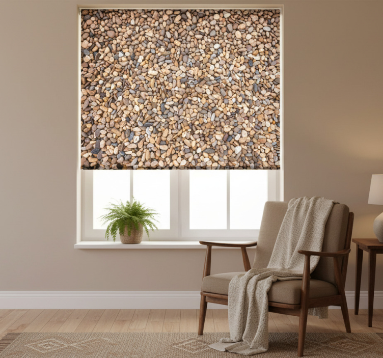 Reference: E9906Transform your space with our Blind bedroom with sea pebbles flooring, a stunning design that brings the calming essence of nature indoors. This unique roller blind features an easy assembly in just two clicks, an effortless cleaning process, and quick disassembly for maintaining your window and surroundings. It not only protects your room from direct sunlight but also enhances your privacy when lowered. Additionally, it helps regulate the room temperature and provides security, allowing you to see without being seen. The blind is the perfect choice for improving the overall decoration of your room, with 100% customizable measurements tailored to your needs. Choose from three different textures to suit your desired light and privacy levels, all while enjoying the convenience of a chain mechanism for easy operation!