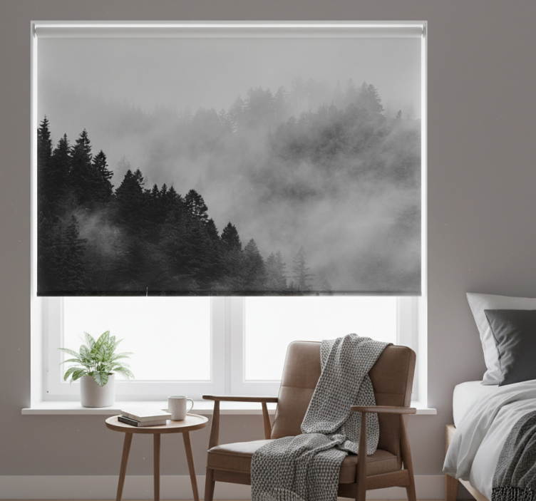 Reference: E10004Introducing our stunning Blind grey misty forest in black and white, a captivating design that transforms any space into a serene retreat. This roller blind features a breathtaking graphic of a misty forest, enveloped in shades of grey and black, evoking a sense of calm and tranquility. With easy assembly in just two clicks, effortless cleaning, and the ability to customize measurements, this blind not only enhances your decor but also provides essential functionality. Enjoy the perfect blend of style and practicality!