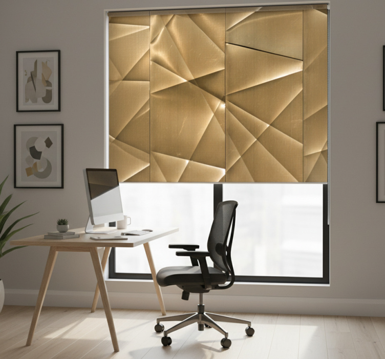 The Blind office 3d golden polygon texture blind office is not just a window covering; it's a statement piece that transforms your workspace! Imagine the inspiring ambiance created by the interplay of light on its golden texture, enhancing creativity and productivity. This roller blind elevates your office decor while ensuring comfort and privacy. It's the perfect addition to anyone looking to rejuvenate their space and make a lasting impression!