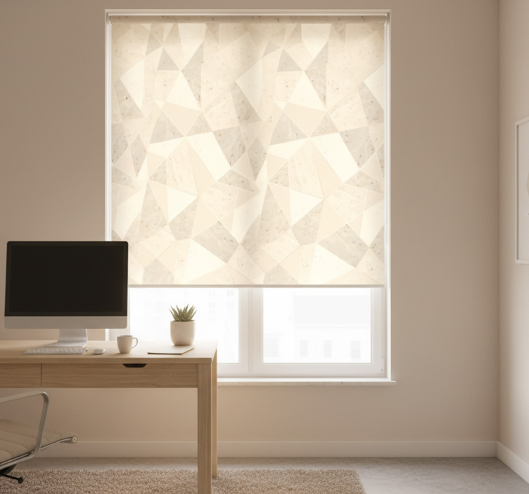 The Blind office 3d golden triangles design blind office is not just a window covering; it is an inspiration for your workspace! Transform your office into a haven of creativity and productivity. This elegant design enhances the ambiance while providing essential functionality, such as privacy and sunlight control. When lowered, it creates a serene atmosphere, allowing you to focus on your tasks while maintaining a stylish environment. Elevate your office decor and let your personality shine through with this beautiful roller blind!