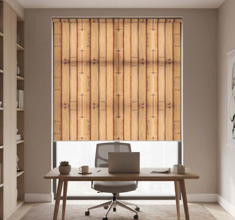 Reference: E7335Introducing our Blind office bamboo wood texture effect, a stunning blend of elegance and functionality, designed to elevate your workspace. This roller blind features a captivating bamboo wood texture effect that beautifully mimics natural materials, bringing a warm and inviting atmosphere to any office setting. With easy assembly in just two clicks, effortless cleaning, and the ability to customize measurements, this product is perfect for those seeking both style and practicality!