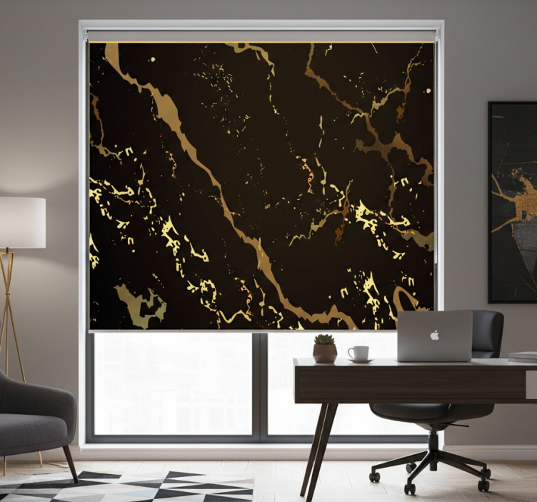 Reference: E7389Introducing our stunning Blind office black gold marble texture, a perfect blend of elegance and functionality. This roller blind features a luxurious black and gold marble design that transforms any office space into a sophisticated haven. With easy assembly, effortless cleaning, and quick disassembly, it allows for a hassle-free experience while enhancing your room's aesthetics. The product effectively protects your space from direct sunlight, offers privacy when lowered, and helps regulate room temperature, ensuring both comfort and style.