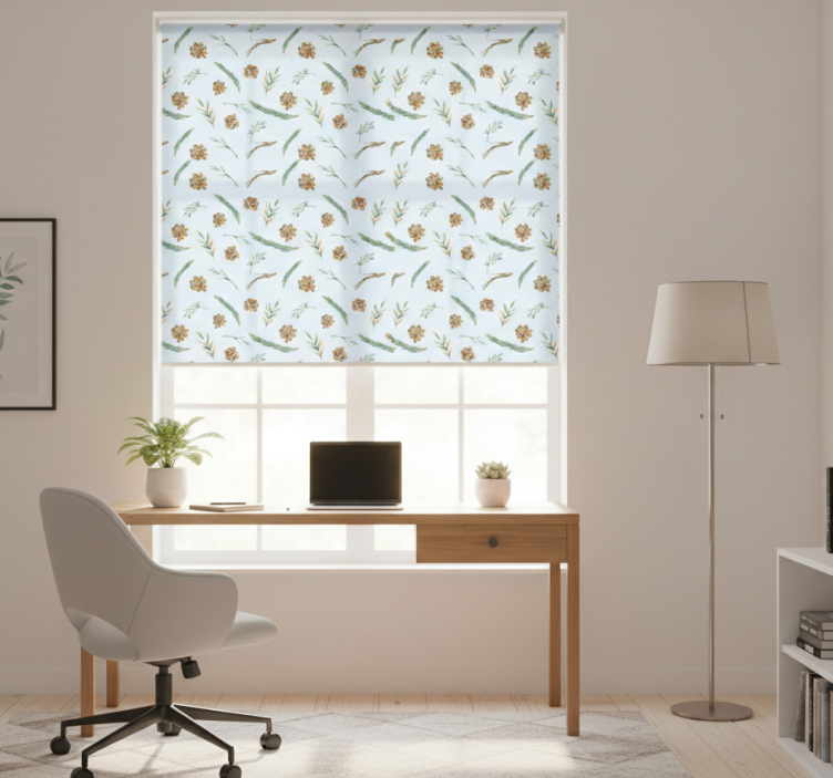 The Blind office blue watercolor floral blind office is not just a window covering; it’s a statement piece that transforms any workspace into a serene haven. Imagine working amidst beautiful, calming blue florals that inspire creativity and productivity. This blind provides an enchanting touch to your office, making it a delightful place to spend your day. Its unique design not only improves the decor but also offers practical benefits, like regulating room temperature and providing privacy when lowered. Elevate your office ambiance with this charming roller blind!