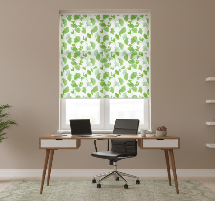 The Blind office ginkgo green leaves design blind office transforms any workspace into a serene environment, fostering creativity and productivity. Its refreshing design brings a touch of nature indoors, inspiring tranquility and focus, while effectively shielding your space from harsh sunlight. Elevate your office atmosphere with this captivating roller blind, making it the perfect choice for anyone looking to enhance their interior decor!