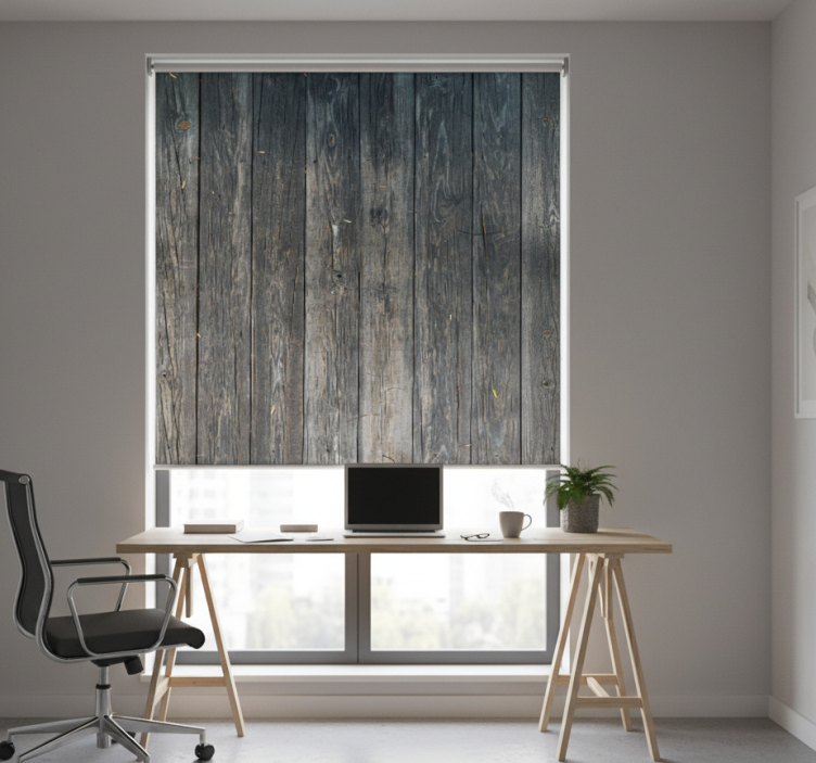 The Blind office gray distressed rustic design blind office is an ideal choice for those looking to elevate their decor. With its charming rustic appeal, it transforms any office space into a cozy and inviting environment. Imagine the warmth of a rustic design blending seamlessly with your modern furniture, creating a unique atmosphere that inspires creativity and productivity. This roller blind not only serves a functional purpose but also acts as a statement piece that enhances the overall aesthetic of your space!
