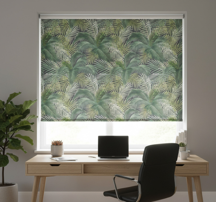 The Blind office green palm leaves design blind office is perfect for anyone looking to elevate their workspace ambiance. Its vibrant colors and natural motifs inspire creativity and productivity, making it a delightful addition to any office. Imagine a workspace where you can focus while being surrounded by the calming essence of nature! This design serves not just as a decorative element, but also as a functional solution, creating a harmonious balance between aesthetics and utility.