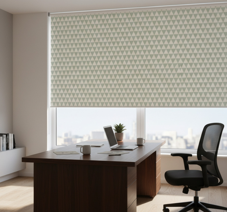 Reference: E7247The Blind office grey triangular shapes features a stunning geometric design that effortlessly blends modern aesthetics with functionality. This product showcases a beautiful interplay of grey triangular patterns that can enhance any office space. The unique design not only captivates the eye but also serves practical purposes, providing privacy and protecting interiors from direct sunlight.