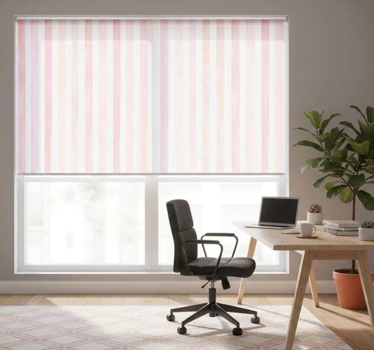 The Blind office watercolor pink stripes blind office is not just a functional item but a stylish statement piece that elevates your décor! Its gentle pink tones and artistic stripes create a serene ambiance, transforming any workspace into a calming retreat. By integrating this roller blind into your environment, you enhance not only the visual appeal but also the overall mood, inspiring creativity and productivity. Perfect for modern office settings, it brings a touch of sophistication while providing practical benefits like sunlight protection and privacy.