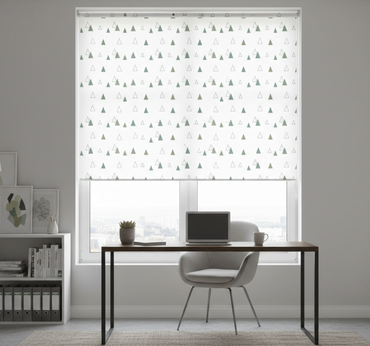 Reference: E7355Introducing our Blind office triangles nature colors, a stunning fusion of design and functionality! This roller blind showcases a captivating geometric pattern in soothing nature-inspired hues, creating an inviting atmosphere in any office space. The design is not only visually appealing but also crafted for practicality, featuring easy assembly in just two clicks, effortless cleaning, and the ability to adjust light and privacy with ease. These roller blinds are perfect for adding a touch of elegance while enhancing your workspace's functionality!