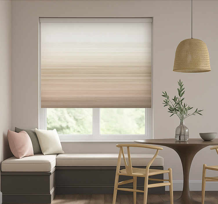 Reference: E5889Transform your space with our Earthy natural tones dining room blind, designed to bring warmth and elegance into your home. Featuring a stunning blend of soft hues, this roller blind not only enhances your décor but also offers easy assembly in 2 clicks, effortless cleaning, and the ability to regulate room temperature while providing privacy.