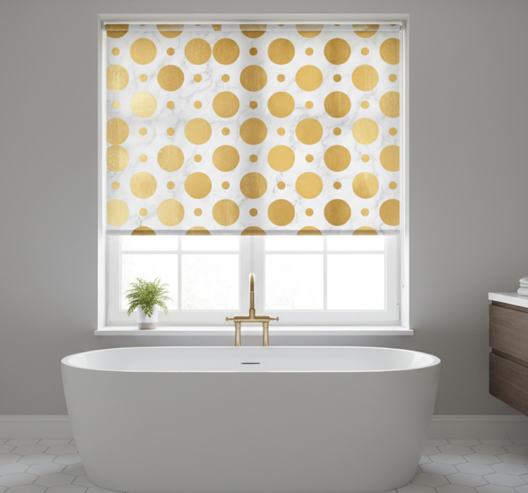 The Gold marble dots bathroom blind serves as an exquisite decorative element that elevates any bathroom aesthetic. Imagine the warmth and elegance it brings, inviting a sense of tranquility and sophistication. This roller blind is not just a practical window covering; it is a statement piece that enhances the overall design of your space, making every moment spent in the bathroom a delightful experience!