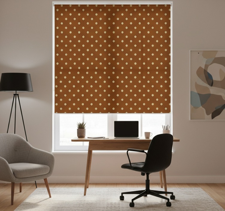 The Home office blind in brown cross pattern home office blind is not just a functional window treatment; it's a statement piece that enhances your home office decor. The intricate brown cross pattern harmonizes beautifully with various interior styles, creating a warm and inviting atmosphere. This roller blind offers both style and substance, making it an ideal choice for those looking to elevate their workspace. Imagine how this elegant design can inspire creativity and productivity in your daily work routine!