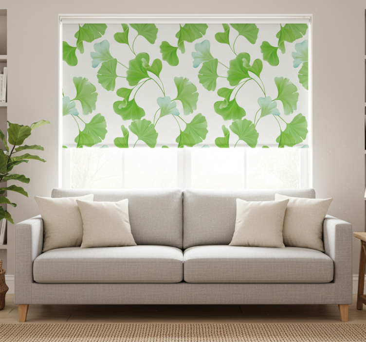 Reference: E9575Transform your space with our stunning Living room blind with green ginkgo leaves. This exquisite design features a vibrant display of lush green ginkgo leaves gracefully cascading across a soft canvas. The combination of nature-inspired aesthetics and modern functionality creates a perfect blend for any living room. With easy assembly in just two clicks, effortless cleaning, and the ability to regulate room temperature, this roller blind enhances both comfort and style!
