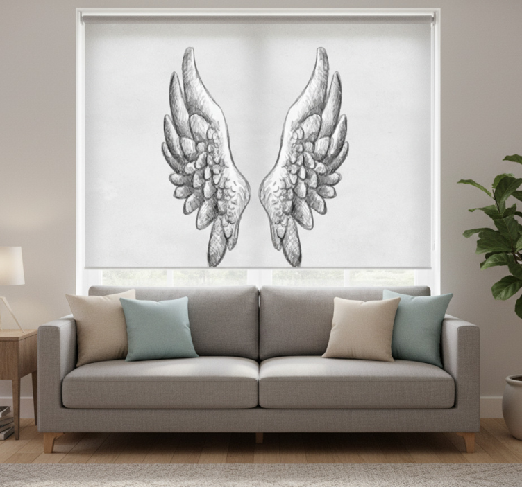 The Living room blind with hand-drawn wings living room blind is perfect for those who wish to elevate their interior design. Its artistic flair adds a touch of creativity, effortlessly transforming any room into a serene retreat. Imagine how this beautiful blind can soften harsh sunlight while enriching your decor with its charming design. Let it inspire conversations and bring warmth to your home!