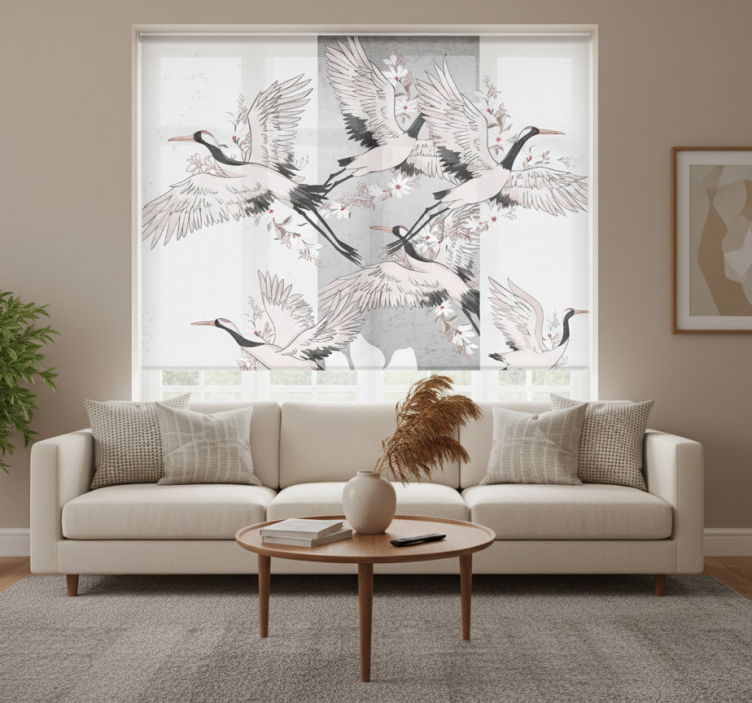 The Living room blind with oriental birds artistic stripe living room blind is the ideal choice for anyone looking to elevate their home decor. Its artistic design adds a unique flair that transforms ordinary spaces into extraordinary ones. Imagine basking in the soft, filtered light while being surrounded by the beauty of nature. This roller blind not only serves as a decorative element but also offers practical benefits, making it a must-have for any stylish home!