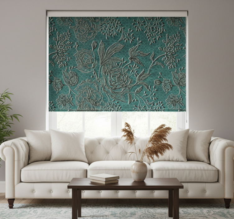 Living room blind with oriental flora design