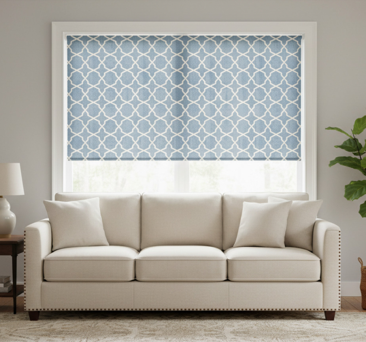The Modern blind in elegant blue design modern blind offers a unique blend of style and practicality, making it an ideal choice for enhancing your home decor. Imagine transforming your living space with a touch of elegance and sophistication! This roller blind not only beautifies your room but also allows you to control light and privacy effortlessly, creating a warm and inviting atmosphere. Let your personality shine through your decor with this exquisite addition!