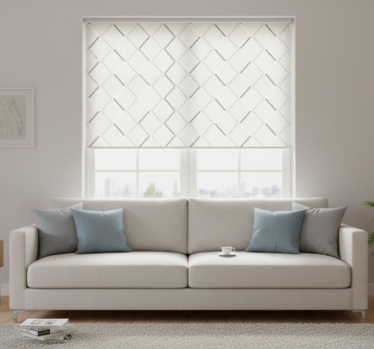 Reference: E7616Transform your living space with our Modern blind with nordic diamonds, a stunning fusion of elegance and functionality. This beautifully crafted roller blind features a unique diamond pattern that adds a touch of sophistication to any room. The design is not just visually appealing; it also includes easy assembly in just two clicks, quick cleaning options, and the ability to regulate room temperature, making it a practical choice for modern households.