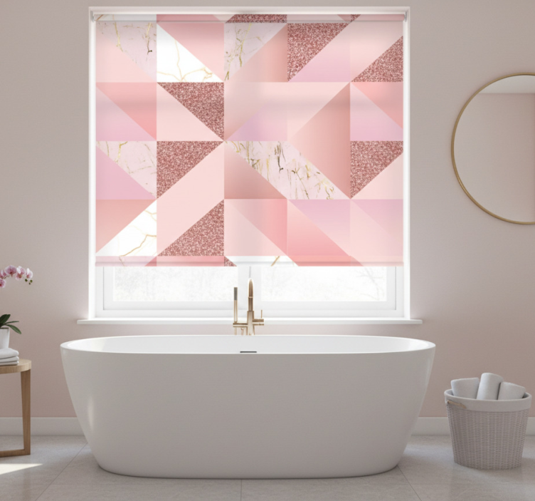 Reference: E6174Transform your bathroom into a sanctuary of elegance with our Pink golden marble bathroom blind. This stunning design features a luxurious pink and gold marble pattern that effortlessly combines sophistication with a touch of warmth, creating an inviting atmosphere perfect for relaxation. The beautiful hues mimic the natural beauty of marble, while the fabric ensures durability and easy maintenance.