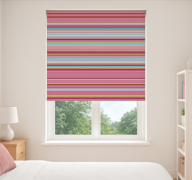 Reference: E5856Transform your space with our Pink Stripe Pattern blind teens, featuring a delightful design that combines playful pink stripes with a chic aesthetic. This roller blind not only enhances your room's ambiance but also offers practical benefits such as easy assembly in just 2 clicks, effortless cleaning, and protection from direct sunlight. Enjoy the perfect balance of style and functionality!