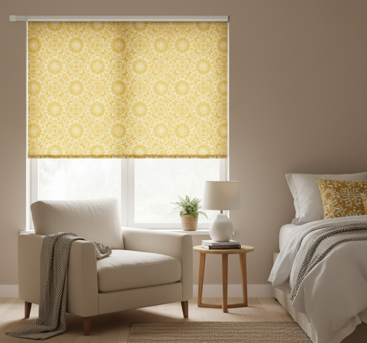 Reference: E9863Transform your space with the Vintage shape yellow blind bedroom. This eye-catching design features a delightful vintage shape in a vibrant yellow hue, infusing your room with warmth and character. The roller blind is not just a functional window treatment; it also enhances your decor with its stylish aesthetics. With easy assembly in just two clicks and convenient cleaning options, this blind is perfect for anyone looking to elevate their bedroom.
