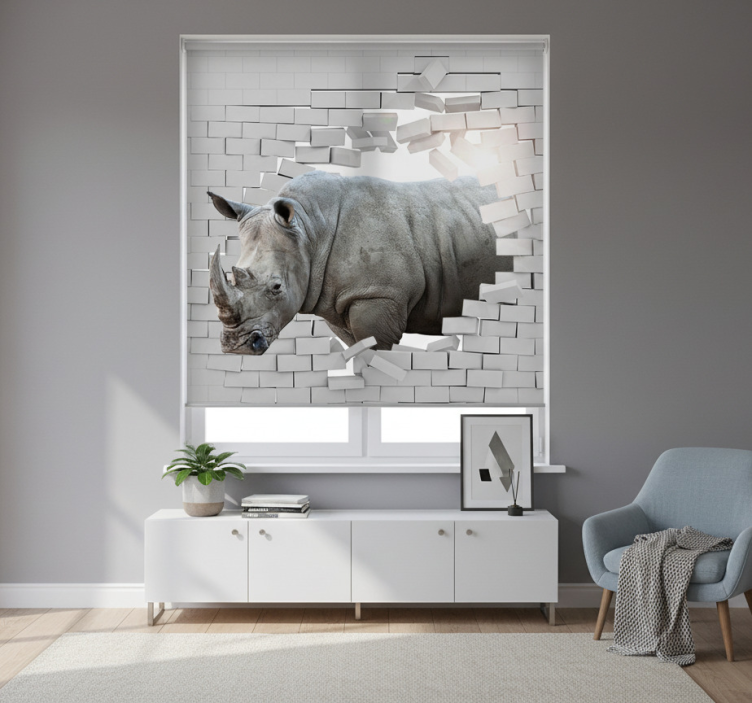 White window blind 3d rhinoceros design
