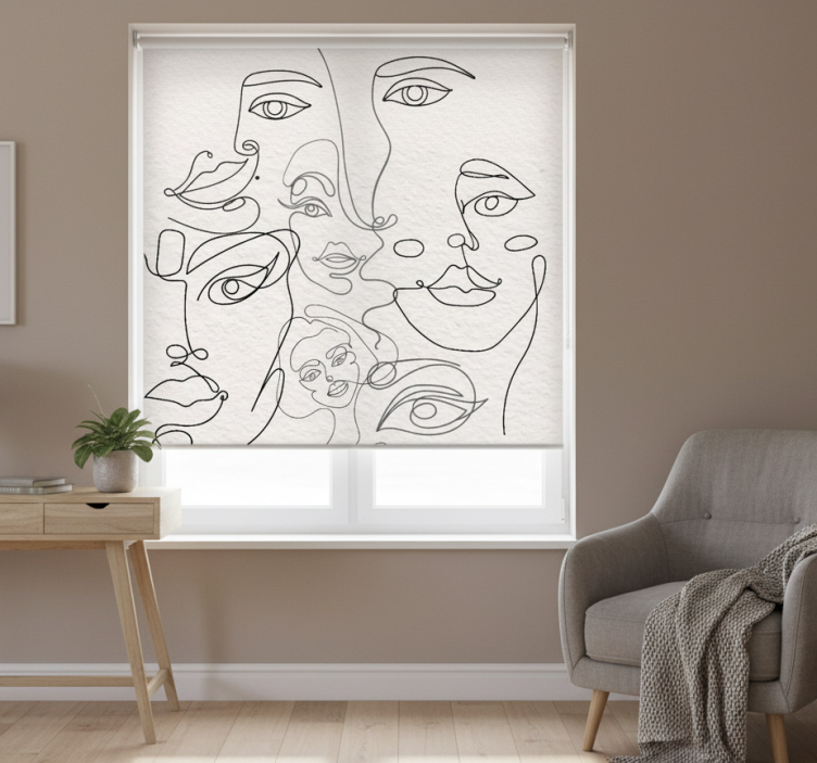 The White window blind minimalist faces line art white window blind is not just a practical solution for light control; it's a statement piece! Imagine enhancing your living space with a design that sparks conversation and admiration. This roller blind elevates your room's aesthetic, adding a touch of sophistication and modern flair. With its ability to regulate room temperature and provide security while allowing you to see without being seen, this product is truly a must-have for anyone looking to enhance their home decor!