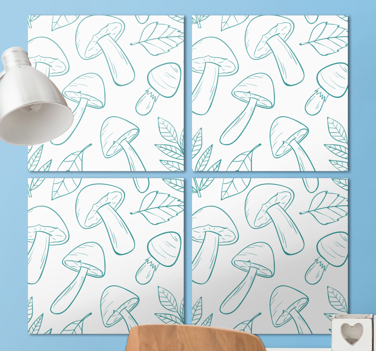 Upgrade your interior decor with our White and Light Blue Mushrooms Pattern Plant Canvas. Discover the unique elements and enhance your satisfaction with this elegant and colorful hand-drawn mushroom aesthetic. The design features a white background adorned with doodle-style light blue mushrooms and leaves, forming a captivating pattern. Choose from a variety of sizes to perfectly fit your kitchen. This canvas is effortless to install, so you can enjoy its charming look without any hassle. Bring a touch of beauty to your dining room as well with this stunning artwork.