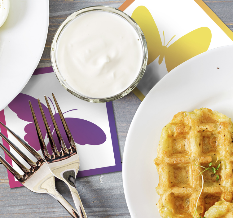 Modern coasters with colorful butterfly designs