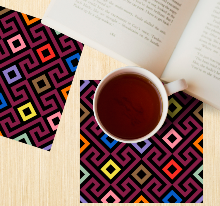 Introducing our Texture coasters colorful geometric design, a stunning blend of modern artistry and functional design! Each coaster showcases an abstract pattern that features geometric shapes in a vibrant array of colors. The bold labyrinth-like design captivates the eye, making it a perfect addition to any decor. Elevate your space with these colorful and geometrical coasters that embody a contemporary flair!