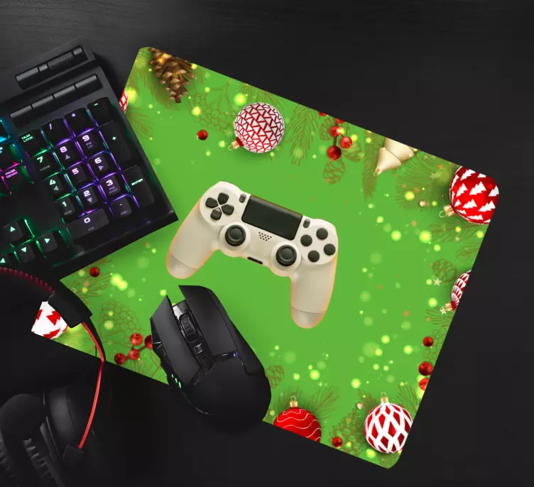 Step away from the typical superficial Christmas decorations like Xmas trees and balls. Add a touch of uniqueness to your computer setup with this Xmas decoration mousepad featuring a vibrant green background adorned with sparkles and colorful motifs.