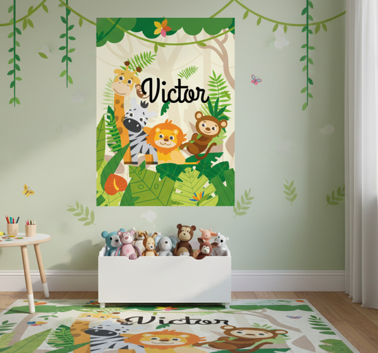 Reference: G940Transform your child's space with our Custom jungle animals nursery poster, a delightful design that brings the wild to life! This enchanting poster features vibrant jungle animals, lush greenery, and a whimsical touch that sparks imagination. Crafted on high-quality 180g/m2 grammage paper, it boasts a semi-matt finish that prevents reflections while delivering high color intensity, making every detail pop!