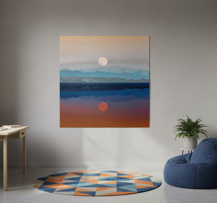 Reference: G779Transform your living space with the stunning Living room poster space beautiful moon design. This enchanting poster features a captivating depiction of the moon, surrounded by a starry night sky, creating an atmosphere of serenity and wonder. With its 180g/m2 grammage that is ideal for posters, a semi-matt finish without reflections, and high colour intensity, this design is sure to be a focal point in any room!