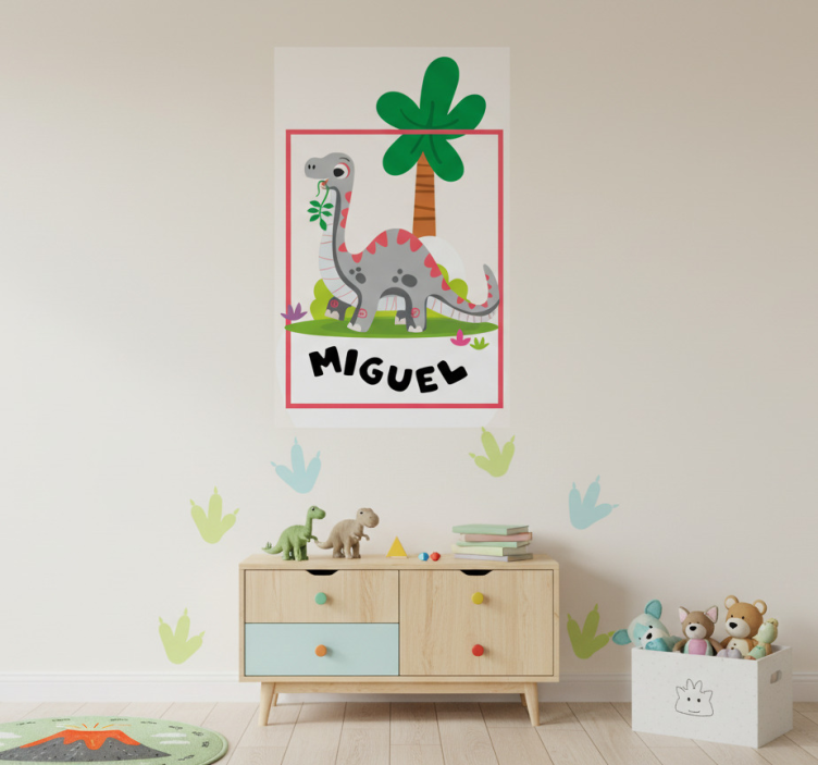 Reference: G963Introducing our Nursery poster gray long neck dinosaur print, a whimsical addition to any child's room! This charming design features a delightful long-neck dinosaur in soft gray tones, bringing a playful yet soothing atmosphere to your nursery. With a semi-matt finish that prevents reflections and high color intensity, this poster is printed on high-quality 180g/m2 paper, ensuring it stands out beautifully on any wall.