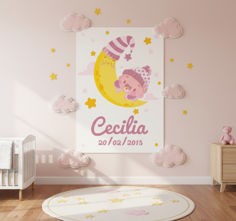 Reference: G922Introducing our stunning Nursery poster baby with name and birth date, designed to add a personal touch to your child's space! This enchanting poster features a beautiful layout with high colour intensity, a semi-matt finish that ensures no reflections, and a sturdy 180g/m2 grammage, making it perfect for any nursery. It captures a moment in time with your baby's name and birth date, creating a lovely keepsake that will warm your heart!
