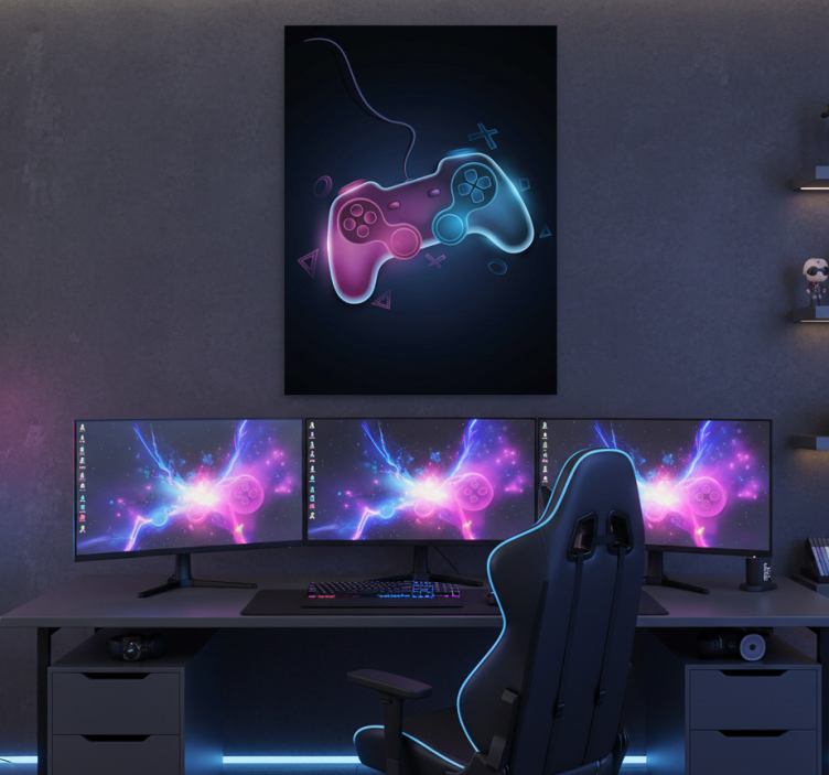 Elevate your environment with the Video game poster with colorful neon pads design video game poster. This artwork serves as more than just decoration; it’s a source of inspiration and joy! The energetic hues and dynamic design can transform any room, sparking creativity and excitement. Imagine a space where the essence of gaming comes to life, making it a perfect addition to your home, office, or gaming area!