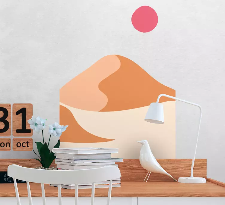 Transform your space with our stunning Abstract sand dunes decoration wall sticker, an exquisite design that captures the essence of nature in a minimalist aesthetic. Featuring an artistic illustration of majestic mountains, abstract sand dunes, and a radiant sun, this wall sticker brings the tranquility of the outdoors into your home. The soothing colors and clean lines create a harmonious atmosphere that is sure to elevate any room’s decor.