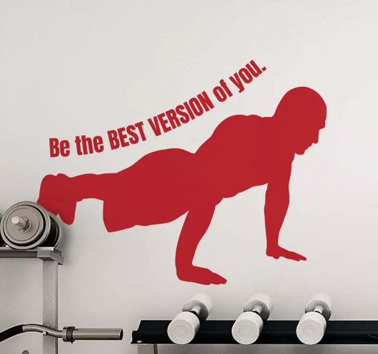 ! It features the text 'be the best version of yourself' with a silhouette of a man doing a push up. Seeing thisinspirational wall sticker