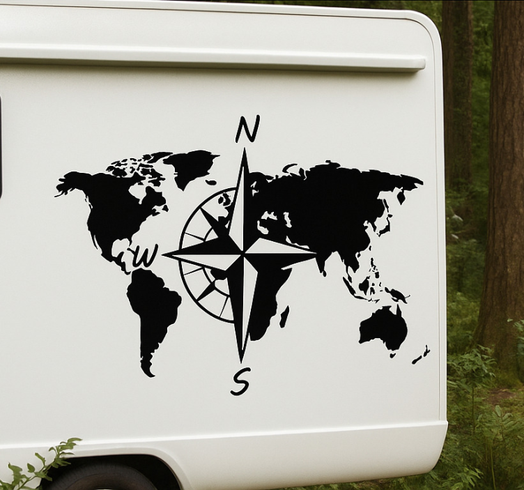 Reference: A53896Elevate your campervan experience with our stunning Campervan decal world map with compass. This exquisite design features a beautifully crafted world map adorned with an intricate compass, making it a perfect blend of adventure and artistry. The vibrant colors and detailed graphics will inspire your wanderlust and add a touch of personality to your camper van!
