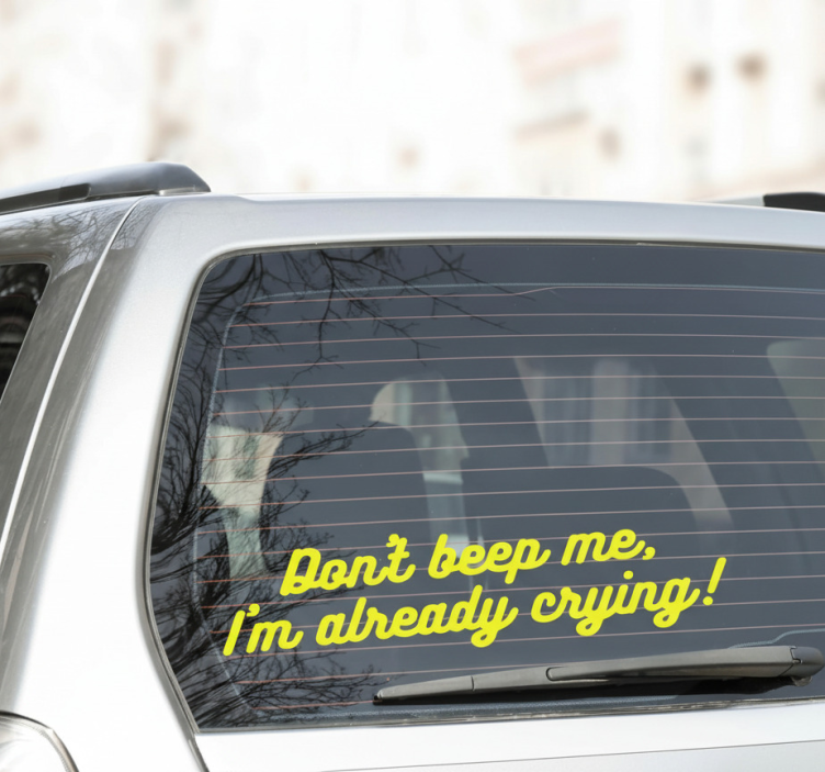 Introducing the Car sticker don't beep i'm crying, a unique and eye-catching design perfect for expressing your emotions on the road! This sticker features a playful, colorful graphic that captures attention with its bold colors and whimsical design. Perfectly crafted with high-quality vinyl, it boasts a satin finish that ensures vibrant colors without reflections, making it a delightful addition to any vehicle.