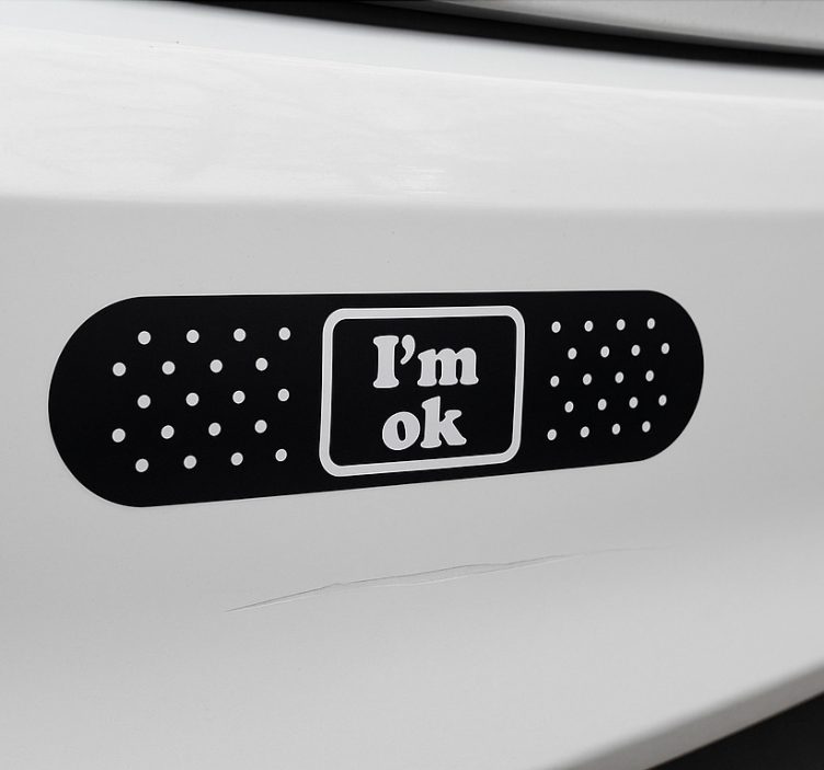 Reference: A53900Introducing our vibrant Car sticker i'm okay band-aid, designed to bring a splash of personality to your vehicle! This eye-catching sticker features a playful band-aid motif, combining bright colors with a fun design that instantly lifts your spirits. Whether you're looking to express your unique style or add a cheerful touch to your car, this sticker is the perfect choice!