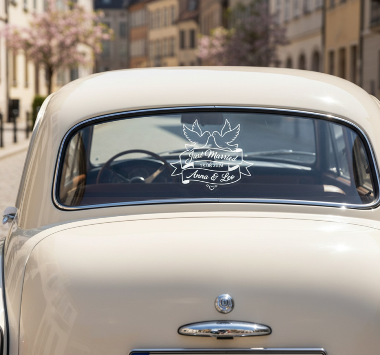 Applying the Car sticker just married love doves car sticker is incredibly simple! Ensure that the surface is clean and dry, then peel and stick the vinyl to your desired location. For a more secure application, consider using heavy-duty adhesive Velcro for flat surfaces or keder profiles for high-tension aluminum framing systems. Enjoy the easy installation and the beautiful results!